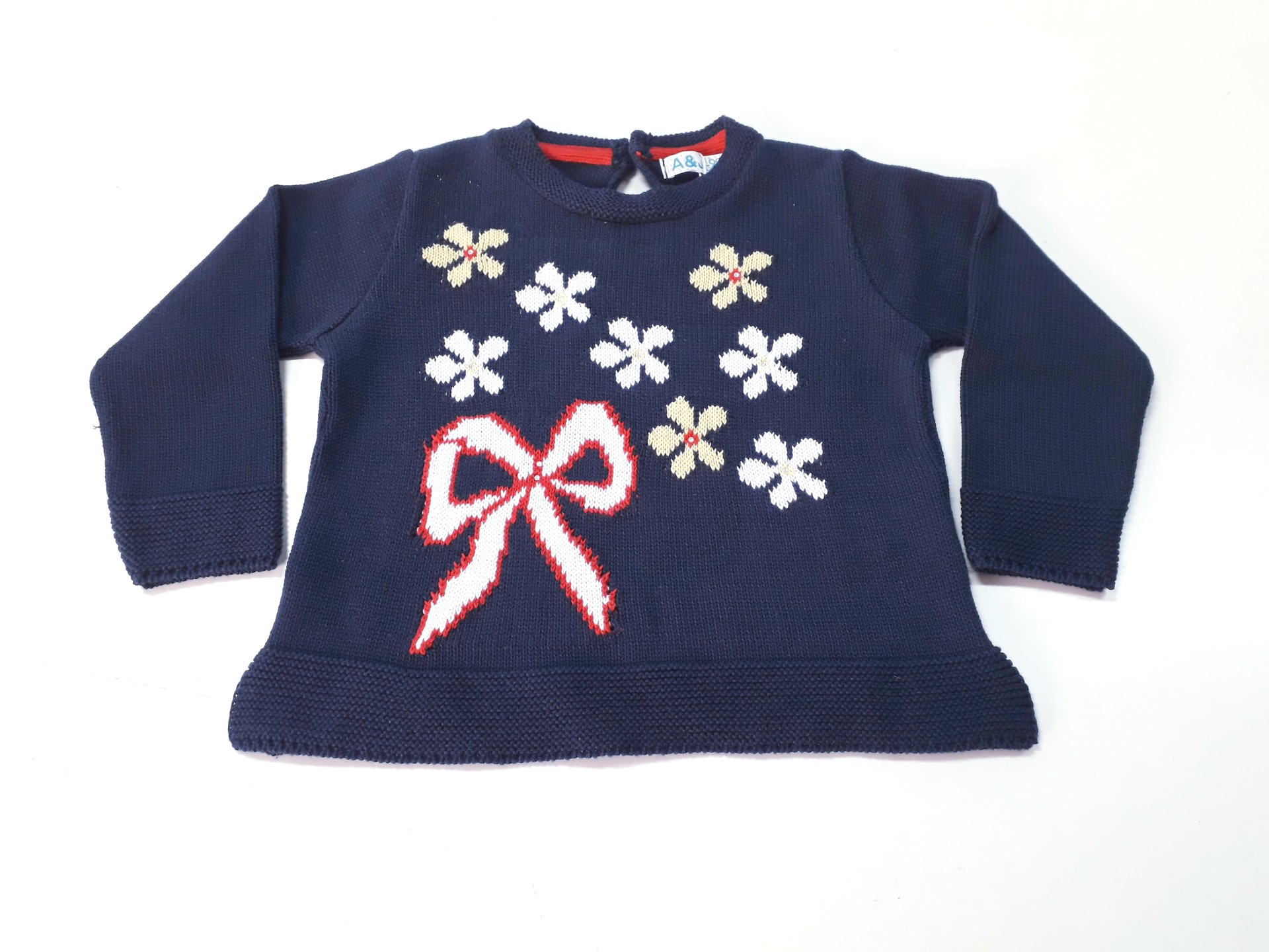 Camisola de menina de malha com jacquard flores.