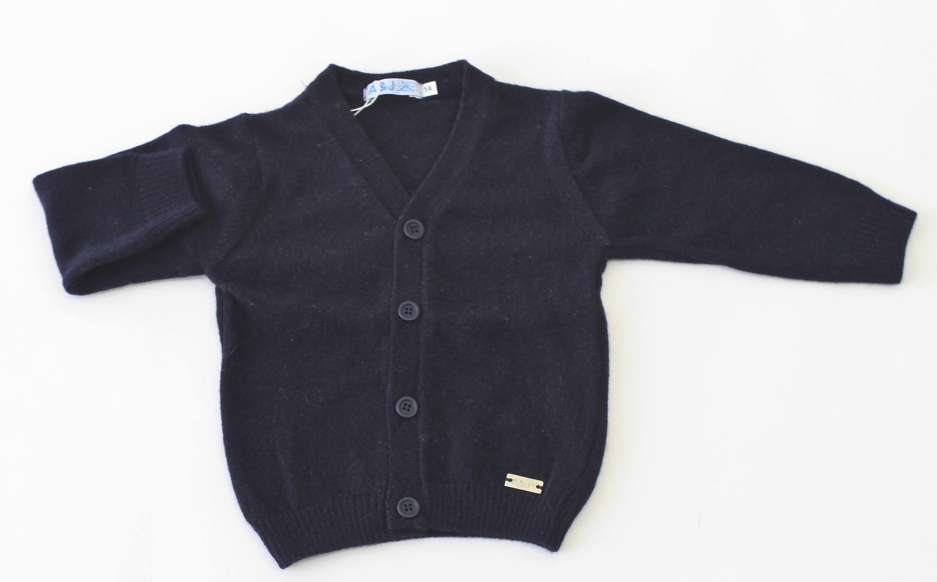 Casaco de menino a apertar com botões e decote em "V".